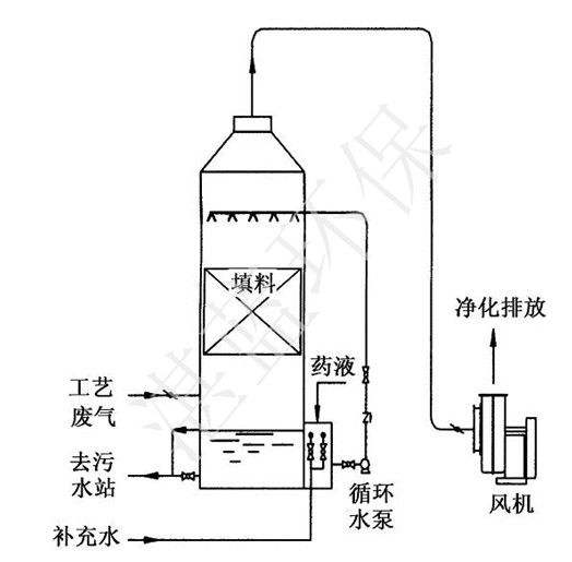 噴霧塔,又稱噴淋塔。塔內無填料或塔板,但卻設置有噴嘴的吸收塔。液體由塔頂進入,經過噴嘴被噴成霧狀或雨滴狀;氣體由塔下部進入,與霧狀或雨滴狀的液體密切接觸進行傳質.使氣體中易溶組分被吸收。結構簡單,不易被堵塞,阻力小,操作維修方便。